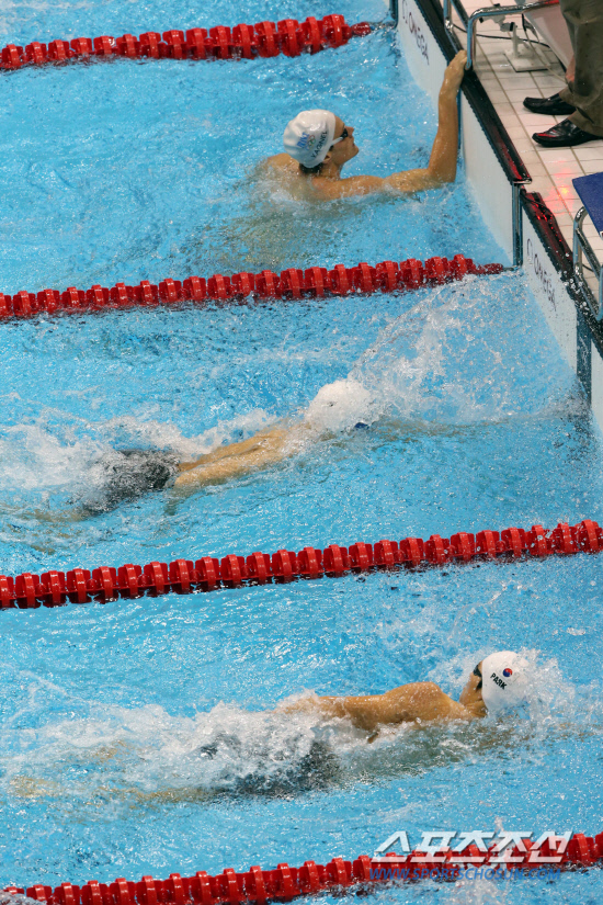 박태환 선수가 30일 런던올림픽 수영경기장인 아쿠아틱스 센터에서 열린 남자 자유형 200m 경기에서 순양과 공동 2위로 들어오고 있다. 20120730. 런던=올림픽사진공동취재단b