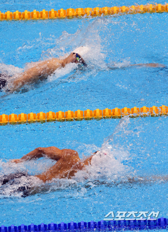 박태환 선수가 30일 런던올림픽 수영경기장인 아쿠아틱스 센터에서 열린 남자 자유형 200m 경기에서 쑨양과 마주보고 수영하고 있다. 20120730. 런던=올림픽사진공동취재단b