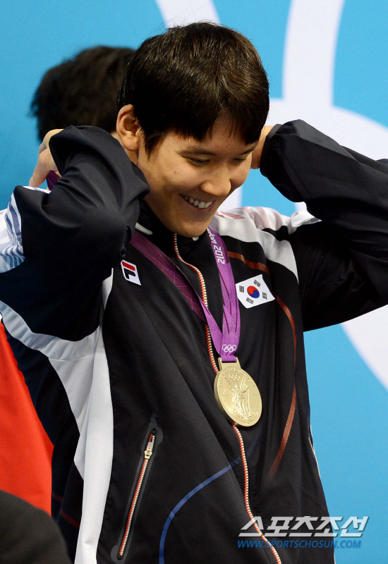 30일 런던 올림픽파크 아쿠아틱스센터에서 열린 런던올림픽 남자 자유형 200미터에서 은메달을 차진한 한국의 박태환선수가 시상식에서 은메달을 수여받고 있다./20120730런던=올림픽사진공동취재단g