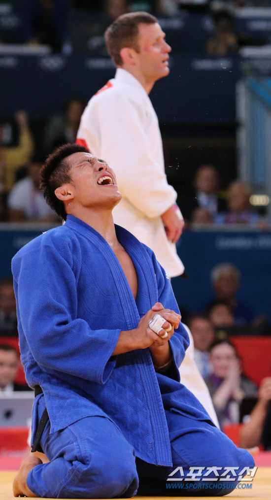 남자 유도 81kg이하급에 출전한 한국의 김재범이 31일 오후(현지시각) 런던 엑셀런던 노스아레나에서 열린 결승전에서 독일의 올레 비쇼프을 상대로 금메달을 따낸 뒤 함성을 지르고 있다.