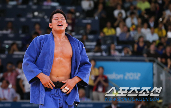 남자 유도 81kg이하급에 출전한 한국의 김재범이 31일 오후(현지시각) 런던 엑셀런던 노스아레나에서 열린 결승전에서 독일의 올레 비쇼프을 상대로 금메달을 따낸 뒤 기뻐하고 있다.