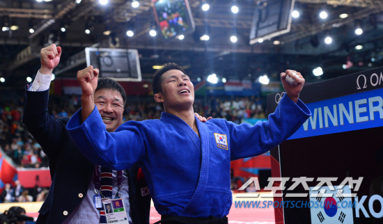 남자 유도 81kg이하급에 출전한 한국의 김재범이 31일 오후(현지시각) 런던 엑셀런던 노스아레나에서 열린 결승에서 우승한 후 기뻐하고 있다. 20120731런던=올림픽사진공동취재단e