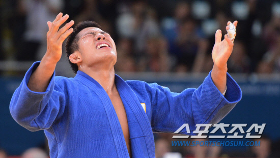 31일 영국 런던 엑셀 유도경기장에서 열린 2012런던올림픽 유도 남자 81kg급 결승에서 김재범 선수가 올레 비쇼프(독일)에 승리한뒤 감격해 하고 있다./20120731런던=올림픽사진공동취재단g