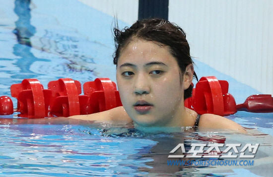 정다래 선수가 1일 런던올림픽 수영경기장인 아쿠아틱스 센터에서 열린 평영 200m 예선을 마친 뒤 숨을 고르고 있다. 정다래 선수는 14위로 준결승에 진출했다