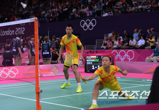 세계배드민턴연맹은 1일 고의 패배 경기와 관련해 한국선수 4명(정경은 김하나 하정은 김민정),중국선수 2명,인도네시아 선수 2명등 8명을 실격처리했다. 런던 웸블리 아레나 경기장에서 1일 오후 중국 xuc(남) maj(여)가 폴란드 선수들과 혼복경기를 1일 오후 펼치고있다