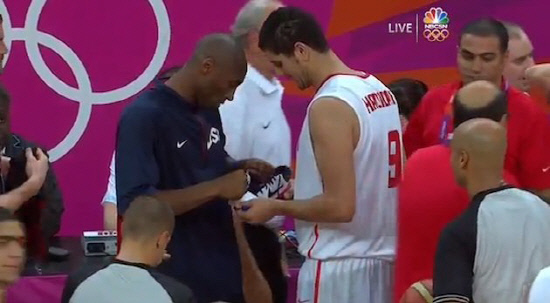 튀니지의 장신 포워드 모하메드 하디단(2m06, 26)은 지난 1일(한국시각) 미국과의 경기 후 선수들끼리 인사를 나누는 과정에서 운동화를 벗은 채 맨발로 서 있었다. 그러고 슈퍼스타 코비 브라이언트(LA레이커스, 33)를 만나자 운동화에 사인을 요구했다.