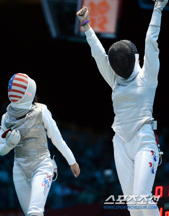 [런던포토] 여자펜싱단체전 전희숙'승리했어요'