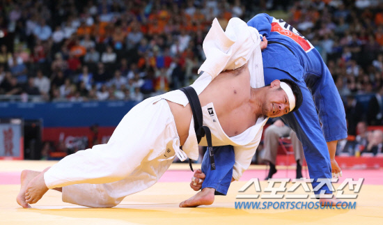 런던올림픽 남자 유도 100kg급에 출전한 한국의 황희태가 2일 오후 (현지시각) 런던 엑셀 노스 아레나에서 몽골의 나이단을 맞아 준결승전을 펼치고 있다. 황희태는 나이단에게 유효를 허용해 결승 진출에 실패했다.