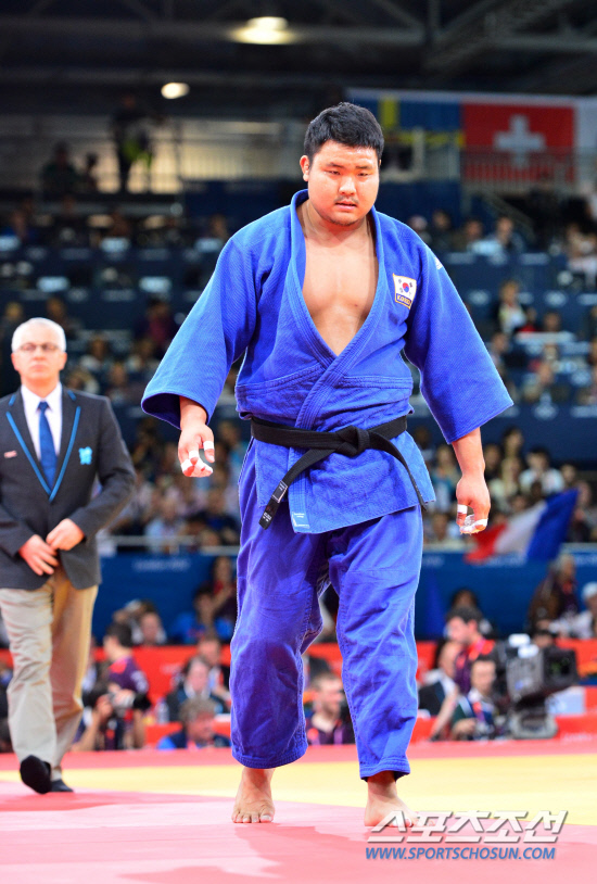 한국 남자 유도 김성민(25·수원시청)이 3일 오후(현지시간)영국 런던 엑셀 노스 아레나에서 열린 2012 런던올림픽 남자 유도 100㎏ 이상급 준결승전에서 프랑스의 린너 테디에게 패한후 아쉬운 표정을 짓고 있다.