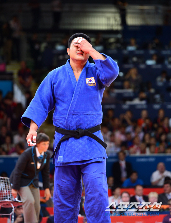 한국 남자 유도 김성민(25·수원시청)이 3일 오후(현지시간)영국 런던 엑셀 노스 아레나에서 열린 2012 런던올림픽 남자 유도 100㎏ 이상급 동메달 결정전에서 패하자 아쉬워하고 있다.