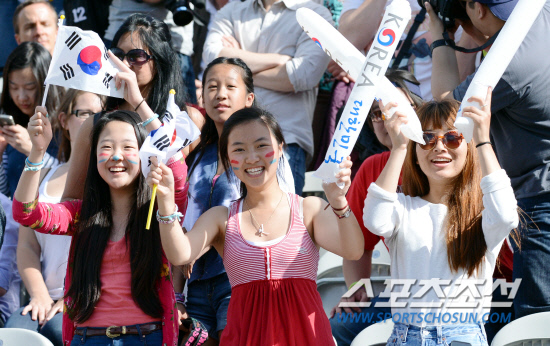 3일 오후(현지시간) 런던 로즈 크리켓 그라운드에서 열린 남자 양궁 개인전에서 오진혁 선수가 금메달을 따자 한국 응원단이 환호하고 있다.20120803런던=올림픽사진공동취재단L