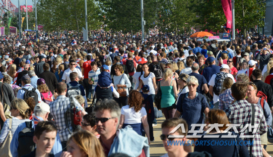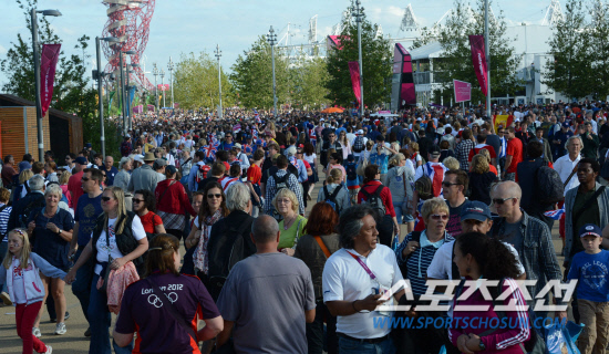 올림픽이 일주일이 지나면서 각국의 메달경쟁도 치열해 지고 관중들의 관심도 절정을 이루고 있다. 3일(현지시간) 올림픽 공원에 각종 경기를 관람하러 온관중들로 인산인해를 이루고 있다. 20120803. 런던=올림픽사진공동취재단b