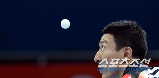 4일 오전(현지시간) 런던 엑셀에 위치한 올림픽 탁구 경기장에서 오상은과 주세혁, 유승민으로 구성된 한국 남자탁구팀이 단체전 첫 경기에서 접전 끝에 북한을 누루고 8강에 진출했다. 오상은 선수가 북한의 김성남 선수와의 경기에서 신중하게 서브를 하고 있다.20120804런던=올림픽사진공동취재단L