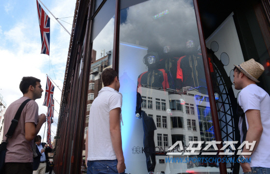 4일 영국 런던의 세계적인 백화점인 헤롯백화점에서 올림픽기간 중 진행되는 '한국 상품 특별전'에서 패션브랜드로는 유일하게 심사에 통과된 코오롱스포츠의 라이프텍 자켓이 쇼윈도우에 전시되어 관심을 끌고 있다./런던=올림픽사진공동취재단