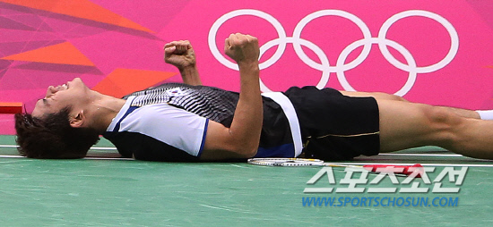 5일오후(현지시각) 영국 런던 웸블리아레나에서 열린 배드민턴 남자 복식 동메달결정전에 말레이시아의 쿠키엔킷-탄분헝 조를 세트스코어 2:0(23:21, 21:10)으로 꺽고 동메달을 획득한 이용대가 환호하고 있다. 20120805 런던=올림픽사진공동취재단m