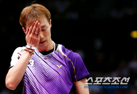 5일오후(현지시각) 영국 런던 웸블리아레나에서 열린 배드민턴 남자 단식 동메달결정전에서 천롱(중국)에게 세트스코어 1-2(12-21, 21-15, 15-21 )로 패한 이현일이 아쉬운 표정을 짓고 있다. 20120805 런던=올림픽사진공동취재단m