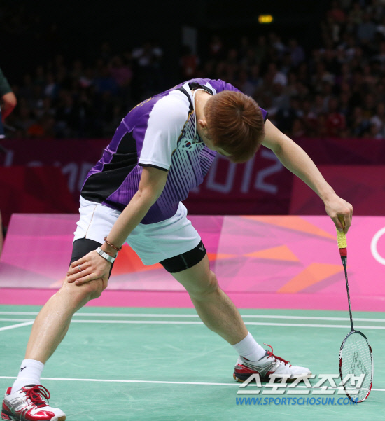 5일오후(현지시각) 영국 런던 웸블리아레나에서 열린 배드민턴 남자 단식 동메달결정전에서 천롱(중국)에게 세트스코어 1-2(12-21, 21-15, 15-21 )로 패한 이현일이 아쉬워 하고 있다. 20120805 런던=올림픽사진공동취재단m