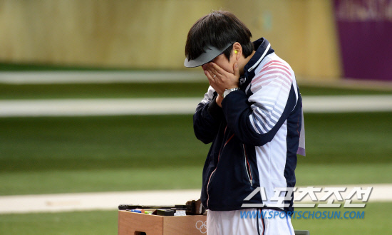 5일 영국 런던 그리니치파크의 왕립 포병대 기지 사격장에서 열린 2012 런던올림픽 남자 50m 공기권총 경기에서 최영래 선수가 마지막발을 쏜뒤 허탈해 하고 있다./20120805런던=올림픽사진공동취재단g