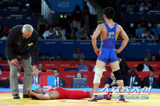 [런던포토] 최규진에 패한 쿠바선수, 큰 대자로 누워