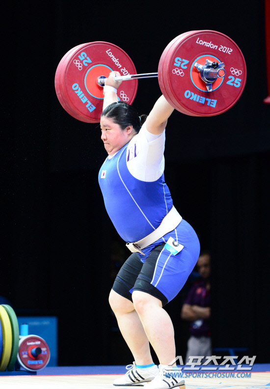 5일(현지시간) 영국 엑셀 런던 사우스 아레나에서 열린 2012런던올림픽 여자 역도 75㎏이상급에 출전해 2회 연속 금메달에 도전하는 장미란이 1차시기 120kg을 가볍게 들어올리고 있다. 120805.런던=올림픽공동사진기자단E