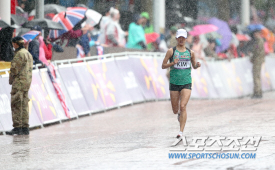 런던올림픽 여자 마라톤에 출전한 한국의 김성은이 5일 오후(현지시각) 런던 버킹엄 궁전 앞 '더 몰' 결승선에 96위로 들어오고 있다.