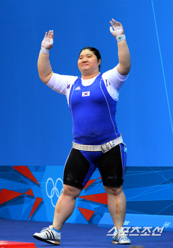 5일(현지시간) 영국 엑셀 런던 사우스 아레나에서 열린 2012런던올림픽 여자 역도 75㎏이상급에 출전해 2회 연속 금메달에 도전한 장미란이 메달획득에 실패한 후 관중들에게 인사하고 있다. 120805.런던=올림픽공동사진기자단E