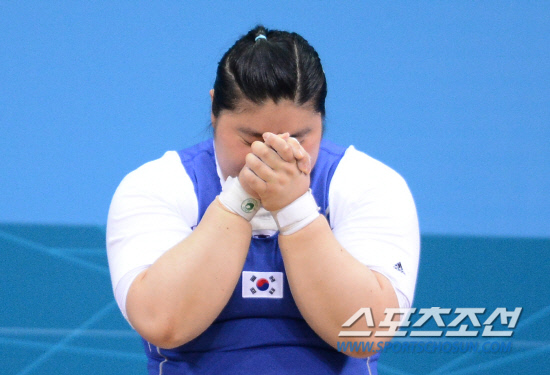 장미란은 5일(현지 시각) 영국 런던 엑셀 사우스 아레나에서 열린 런던올림픽 75kg이상급 결승에서 인상 125kg, 용상 164kg 등 합계 289kg에 그쳤다. 자신의 최고 기록인 326kg에 크게 못 미치는 기록으로 294kg의 흐리프시메 쿠르슈다(아르메니아)에 밀려 동메달이 무산됐다. 장미란 선수가 기도를 하고있다