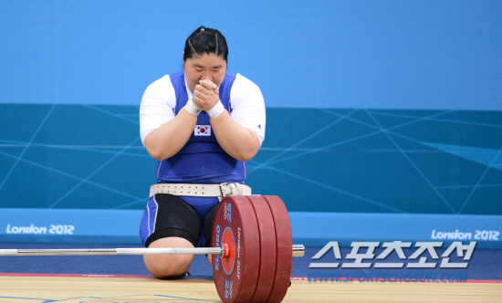 장미란은 5일(현지 시각) 영국 런던 엑셀 사우스 아레나에서 열린 런던올림픽 75kg이상급 결승에서 인상 125kg, 용상 164kg 등 합계 289kg에 그쳤다. 자신의 최고 기록인 326kg에 크게 못 미치는 기록으로 294kg의 흐리프시메 쿠르슈다(아르메니아)에 밀려 동메달이 무산됐다. 장미란 선수가 기도를 하고있다