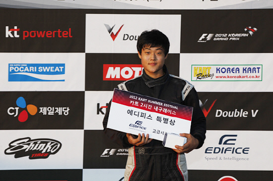 그리핀-모노코리아 김강두(16) 군이 4일 경기도 파주스피드파크에서 열린 제1회 2012 카트 썸머 페스티벌(2시간 내구레이스)에서 카시오 에디피스상을 수상했다.