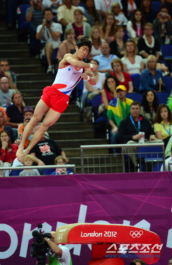 6일(현지시간) 영국 런던 노스그린위치 아레나에서 열린 2012런던올림픽 남자체조 뜀틀분문 결승에서 양학선이 멋진 연기를 선보이며 금메달을 따냈다. 120806.런던=올림픽공동사진기자단E