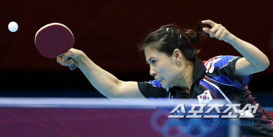 김경아, 석하정, 당예서가 팀을 이룬 대표팀은 7일 영국 런던의 엑셀 런던 노스아레나에서 열린 대회 여자 단체전 3-4위전에서 김경아선수가 첫 단식에서 싱가폴팀과 경기하고 있다.