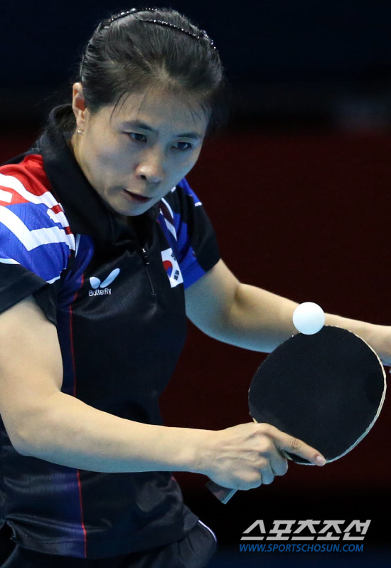 김경아, 석하정, 당예서가 팀을 이룬 대표팀은 7일 영국 런던의 엑셀 런던 노스아레나에서 열린 대회 여자 단체전 3-4위전에서 김경아선수가 첫 단식에서 싱가폴팀과 경기하고 있다.