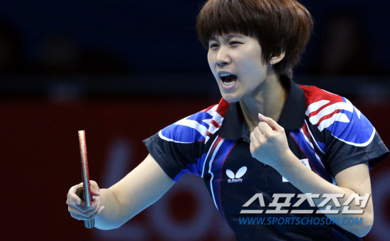 김경아, 석하정, 당예서가 팀을 이룬 대표팀은 7일 영국 런던의 엑셀 런던 노스아레나에서 열린 대회 여자 단체전 3-4위전에서 석하정선수가 두번째 단식에서 싱가폴팀 리 지아웨이와 경기하고 있다.