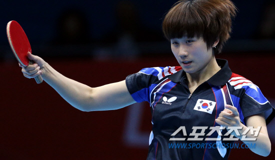 김경아, 석하정, 당예서가 팀을 이룬 여자탁구대표팀이 7일 영국 런던의 엑셀 런던 노스아레나에서 열린 대회 여자 단체전 3-4위전에서 석하정선수가 두번째 단식에서 싱가폴팀 리 지아웨이와 경기하고 있다.