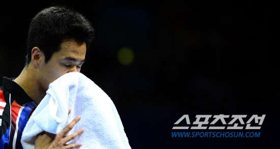 [런던포토] 탁구 주세혁 '땀 좀 닦고...'