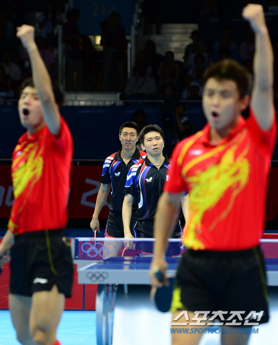 [런던포토] 환호하는 중국 선수들, 아쉬워하는 유승민 오상은