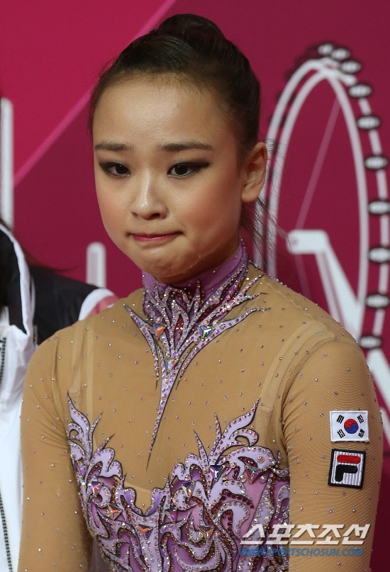 한국 리듬체조의 요정 손연재가 9일 오후(현지시각) 영국 런던 웹블리 아레나에서 열린 리듬체조 여자 개인종합 예선경기에서 후프연기를 마친 뒤 키스엔크라이에서 긴장된 표정을 짓고 있다. 손연재는 세계 정상급 선수들과 맞서 올림픽 사상 첫 결승진출을 노리게 된다. 20120807 런던=올림픽사진공동취재단m