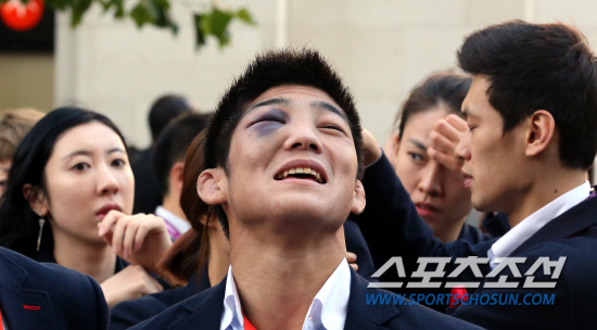 [런던포토] 레슬링 김현우 '영광의 상처에요'