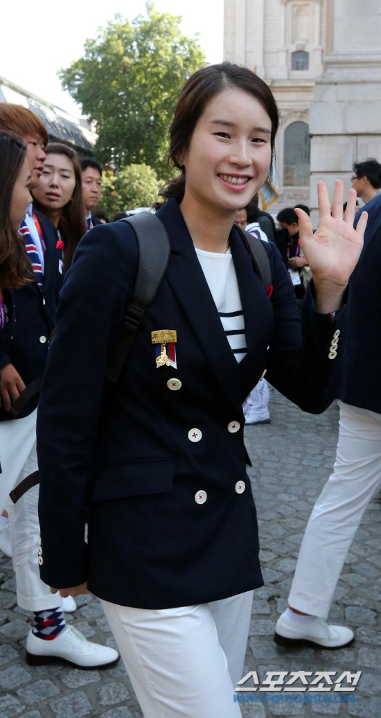 런던올림픽에 참가하고 있는 박용성 대한체육회장과 이기흥 한국선수단장, 대회 메달리스트들이 9일(현지시간) 6·25 참전 용사비가 있는 런던 시내 세인트 폴 대성당을 찾아 참배했다. 기보배선수가 인터뷰하고 있다.