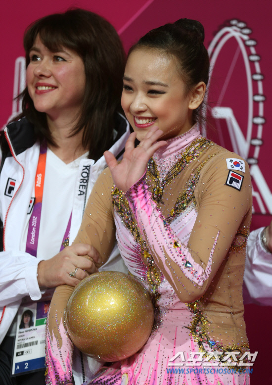 한국 리듬체조의 요정 손연재가 9일 오후(현지시각) 영국 런던 웹블리 아레나에서 열린 리듬체조 여자 개인종합 예선경기에서 'Limelight-Les Melodies De MonCoeur'에 맞춰 공연기를 선보인뒤 키스엔크라이에서 밝은 표정을 짓고 있다. 손연재는 세계 정상급 선수들과 맞서 올림픽 사상 첫 결승진출을 노리게 된다. 20120807 런던=올림픽사진공동취재단m