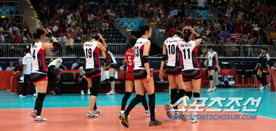 2012 런던올림픽에서 36년만에 메달사냥에 나선 한국여자배구팀이 세계1위 미국팀과 경기하고 있다.하고 준결승에 진출했다.9일런던의 얼스코트에서 열린 2012 런던올림픽 배구 4강전에서 미국전에서 경기하고 있다.2세트 패배후 퇴장
