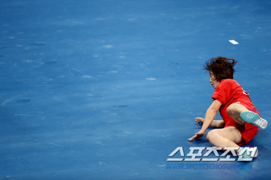 9일 올림픽파크 핸드볼경기장에서 열린 여자핸드볼 준결승 한국 대 노르웨이전에서 조효비가 공격에 실패하고 쓰러지고 있다.우리나라가 31대 25로 패