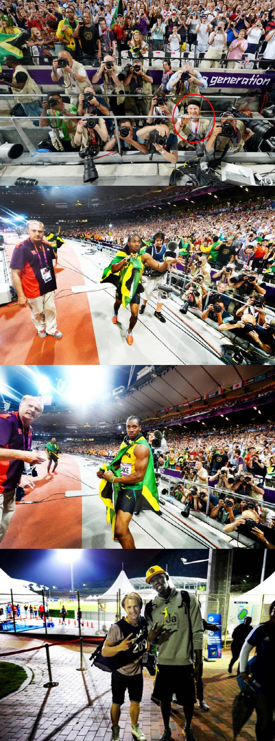 이날 카메라를 빼앗긴 사진기자는 스웨덴 타블로이드 '아프텐블라뎃' 소속의 지미 빅스트룀. 그는 신문에 볼트가 자신의 카메라로 찍은 사진을 공개하면서 자신과 볼트와의 인연을 전했다.