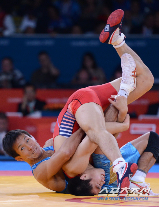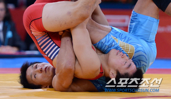 10일 영국 엑셀 런던 노스 아레나에서 열린 런던올림픽 남자레스링 자유형 55㎏급 16강전에서 김진철 선수가 일본의 유모토 신이치에게 공격하고 있다. 김진철 선수는 역전패 하였다./20120810런던=올림픽사진공동취재단g