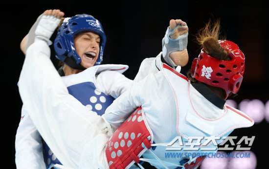 런던올림픽 태권도 여자 67kg급에 출전한 한국의 황경선이 10일 밤(현지시각) 런던 엑셀 사우스 아레나에서 열린 결승에서 터키의 누르 타타르를 맞아 우세한 경기를 펼치고 있다. 황경선은 12-5로 승리해 금메달을 목에 걸었다.