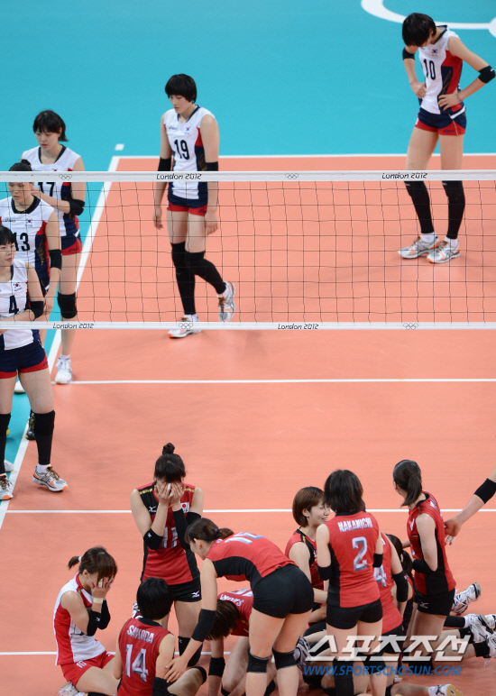 11일 오전(현지시간) 런던 얼스코트에서 열린 여자배구 3~4위 전에서 숙적 일본을 맞아 한국여자배구 대표팀이 최선을 다했지만 세트스코어 3-0(22-25,24-26,21-25) 완패로 아쉽게 4위에 그치며 모든 여정을 끝냈다. 경기에 패한 선수들이 아쉬운 표전으로 코트를 떠나고 있다.20120811런던=올림픽사진공동취재단L