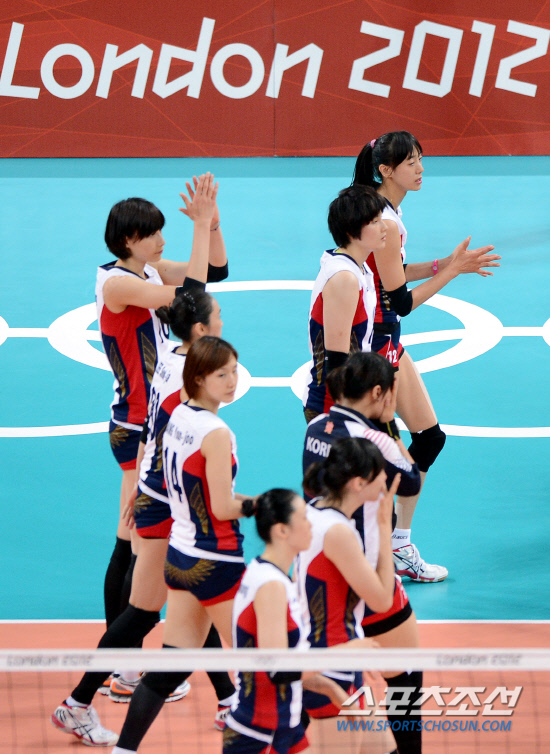 11일 오전(현지시간) 런던 얼스코트에서 열린 여자배구 3~4위 전에서 숙적 일본을 맞아 한국여자배구 대표팀이 최선을 다했지만 세트스코어 3-0(22-25,24-26,21-25) 완패로 아쉽게 4위에 그치며 모든 여정을 끝냈다. 경기에 패한 선수들이 아쉬운 표전으로 코트를 떠나고 있다.20120811런던=올림픽사진공동취재단L