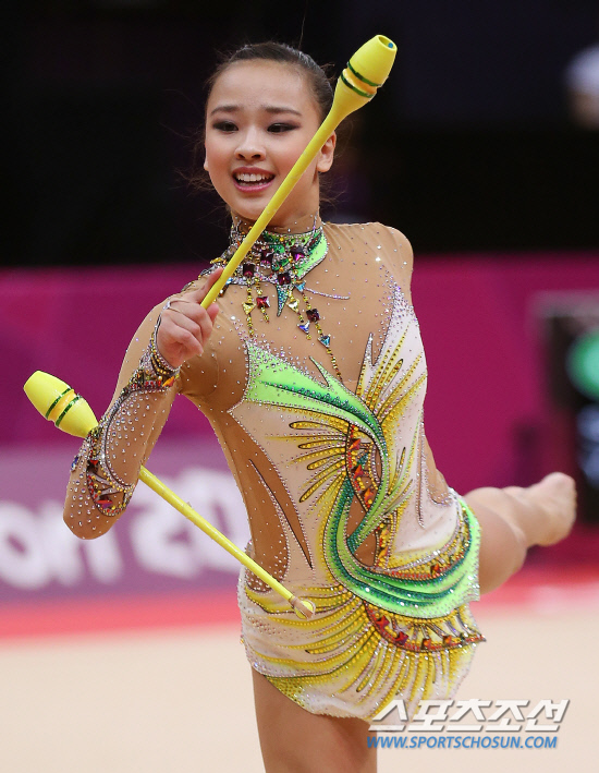 체조요정 손연재가 11일 오후(현지시각) 영국 런던 웸블리 아레나에서 열린 리듬체조 여자 개인종합 결선에서 곤봉연기를 하고 있다. 손연재는 세계 정상급 선수들과 맞서 올림픽 사상 첫 메달 획득에 도전한다. 20120811 런던=올림픽사진공동취재단m