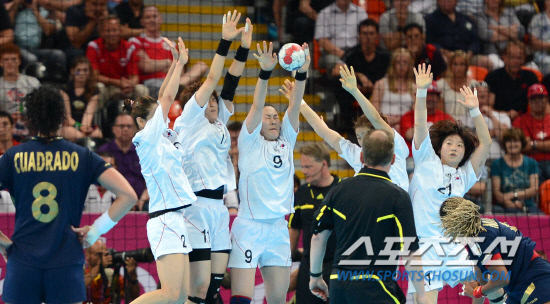 11일 오후 영국 런던 올림픽파크 바스켓볼 아레나에서 열린 2012 런던올림픽 여자 핸드볼 3,4위전 한국와 스페인의 경기에서 한국선수들이 필사적으로 수비를 펼치고 있다./20120811런던=올림픽사진공동취재단g