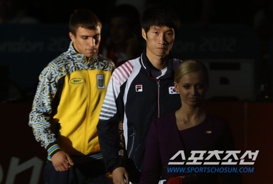 한순철이 12일 엑셀런던 복싱경기장에서 열린 라이트급 결승에서 우크라이나의 바실 로마첸코로를 져 은메달을 따는데 만족해야 했다. 한순철 선수가 시상식장에 들어서고 있다. 20120812. 런던=올림픽사진공동취재단b